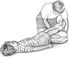Если ребенок в сознании и у него нет травмы грудной клетки с нарушениями дыхания или травмы головы, положите его на спину и поднимите ноги на 2030 см. Если сознания ребенок не потерял, но у него травма грудной клетки с нарушениями дыхания или травма головы, приподнимите ему голову, а не ноги. |